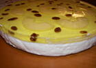 a ja namoczyłem rodzynki w wodzie gorącej wodzie wymieszanej z rumem i cukrem, do masy dodałem otartą skórkę pomarańczy a na dno tortownicy ułozyłem biszkopty które nasączyłem tym w czym moczyłem rodzynki i wyszło pyszne