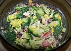 Ja zrobiłam wersję dla mnie (będącej całe życie na diecie zgodnej z grupą krwi), a mianowicie: 1 mała brokuła, łyżka chudego mięska pokrojonego w kostkę, 3 plasterki sera białego mocarella (kostka), łyżka sera żółtego (kostka), po łyżce: słonecznik, morele suszone, żurawina, pestki dyni oraz pół pomidora (kostka), 2 łyżki majonezu, sól, pieprz, po pół łyżeczki octu i cytryny. Bez cukru. Wyszła bardzo dobra.