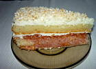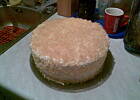 Oczywiście niestężała galaretka zalała cały biszkpot, dzięki czemu spód miałam czerwony ale nawet fajnie to wyglądało... Masa wyszła ok, posypka wyszła przepyszna. Ciasto jest bardzo bardzo smaczne. Teściom jak zwykle smakowało ( nawet chcieli po kawałku do domu ) więc, wygrałam.