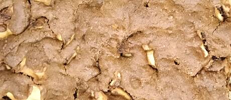 Dodać mąkę wymieszaną z proszkiem, sodą i kakao, wymieszać. Przełożyć na blaszkę wysmarowaną masłem i obsypana mąką lub tartą bułką (lub wyłożoną papierem do pieczenia).