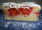 Ciasto bardzo dobre aczklwiek nie gustuje w ciastach na maślance , jogurcie dla mnie takie kluskowate mamłygi :D . W tym wypadku ciacho super , dodałam szczypte soli i truskawki położyłam w całosci , tylko podstawy truskawki w mące obtoczyłam.Maślnkę do podniesienia smaku użyłam truskawkową . Efekt do obejrzenia poniżej ... . Dziekuję i pozdrawiam autorkę :D