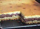 Bardzo lubię serniki i ciasta z masami budyniowymi, zatem ten przepis nie mógł przejść niezauważony:-) Właśnie zjadłam dwa kawałki. Ciasto jest smaczne, nie za słodkie, na pewno zadowoli miłośników budyniu:) Piekłam 50 min. w temp. 175 przy termoobiegu i miejscami za bardzo się przyrumieniło. Myślę, że każdy jednak zna swój piekarnik i wie, na co może sobie pozwolić. A oto efekt mojego pieczenia Nie wiem, czy efekt jest zbliżony do wypieku Judyty, mam nadzieję, że choć trochę;-) Dzięki za przepis, pozdrawiam.