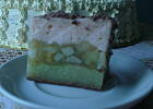 Zrobiłam to ciasto i w smaku jest jak najbardziej ok, ale wykonanie... u mnie klapa. Żółta galaretka juz mi stężała a zielona ani, ani. Żeby cokolwiek z tego ciacha uratować wylałam na biszkopt zieloną masę (jabłka z galaretką) i wszystko mi wsiąkło w biszkopt. A cytrynowa śmietanka zupełnie stężała więc tylko "popaćkałam" po wierzchu. W przyszłości muszę to lepiej zorganizować w czasie (już wiem co ma być zrobione najpierw, jakie czynności wykonywac po kolei.) Na błędach człowiek się uczy.