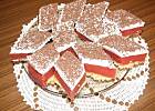 Ja też zrobiłam z dwóch torebek truskawek mrożonych (2x400g), dałam dwie galaretki (bo myślałam, że skoro podwajam porcję truskawek, to muszę też podwoić porcję galaretek), ale budyni nie podwajałam (bo tylko 2 miałam, z cukrem zresztą - za to mniej cukru dałam do truskawek). Ciepłą masa mi nie zaczęła gęstnieć, więc dodałam żelatyny, ale chyba niepotrzebnie, bo truskawki ładnie stężały w lodówce i bez problemu się kroiły. Na górze ubita śnieżka+ gorzka czekolada.