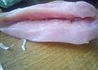 Podwójną pierś kroimy na 2 równe części, tak by powstały dwie identyczne pojedyncze piersi. Każdą z nich ostrym nożem delikatnie przecinamy i tym sposobem uzyskamy 4 płaty mięsa mniej więcej tej samej wielkości. A to fotka na której pojedynczą pierś kroję na 2 płaty. Mam nadzieję , że w miarę zrozumiale to opisałam
