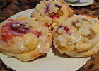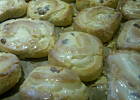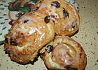 Pierwsze z serkiem białym + serek homoseksualny + rodzynki. Polane lukrem.
