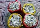 własnie papryczki mam w piekarniku:) przesmazylam osobno cebule, mieso pieczarki, nie odcinalam duzo tylko minimalnie zeby moc wydrazyc srodek - gdybym odciela czapeczke byly by płytkie za bardzo, to co odcielam pokroilam, przesmazylam i dodalam, i oczywiscie torebka ryzu, doprawilam duza iloscia pieprzu , troche soli, a ha i do farszu dodalam pokrojony w kostke zolty ser , pietruszke bazylie i oregano. z kostki zrobilam rosołek z ziarenkami smaku i maggi, pół godziny dusilam zamkniete teraz je odkryłam i pod koniec połoze na kazdej plasterek serka, i wiem ze to bedzie pycha danie!!!