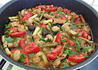 Niskobudżetowy gulasz z warzywami lata. Nie było chętnego po ogórki kwaszone z piwnicy no to dołożyłam dla koloru i smaku pomidora paprykowego i nawet podgrzybki (samodzielny zbiór). Fajny warzywny posmak.)))