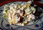 sałatka pyszna,moi goscie byli zachwyceni jej niepowtarzalnym smakiem.Moj syn dodał do niej starty zółty ser i efekt był niesamowity.Mnie smakowała rtównież bez dodatku sera.Przepis super!