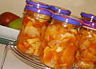 Zrobiłam te jabłuszka wcześniej na próbę i bardzo mi i mojej mamie smakowały, wiec dzis robię kolejna porcję. Wcześniej zrobiłam w takich średnich słoiczkach ale doszłam do wniosku że sa zaduże i teraz użyłam takich po koncentratach. Wyszło mi 10 słoiczków. aha i jednak na wszelki wypadek pasteryzowałam 10 minut