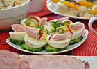 Jajka poza walorami zewnętrznymi wspaniale smakuja i sa ozdoba kazdego stołu. Tak jak kaniew dodałam serka, zamiast majonezu (cholesterol) i był to serek łososiowy, który wspaniale współgrał z resztą. Dziękuję za pomysły.Na zdjęciu jajka z Twoim kwiatem z salami