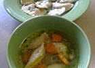 Oto moje "kołduny" z gotowym wieprzowo - wołowym mięsem mielonym, w rosołku drobiowo - wołowym / porcja rosołowa + szponder /. Pyszne połączenie, dziękuję za przepis :) POLECAM! P.S. Ciasto pierogowe z przepisu megi65.