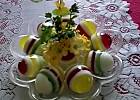 Bardzo atrakcyjny, choć pracochłonny przepis. Polecam używać sporych jajek, ja miałam kilka mniejszych, które nie osadzone szczelnie w wytłaczance podczas napełniania kiwały się na boki i paski wyszły nierówne. Ale i tak goście byli zadziwieni, jak zrobiłam jajka.