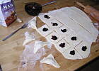 z tego ciasta - CIASTO SEROWE - robiłam też rożki w wiśniami , niebo w gębie , chrrrupiące , wyśmienite , mogą to być konfitury wiśniowe lub zagęszczone -jak kisiel - owoce posłudzone , rozwałkowane ciast kroję na kwadraty , nakładam nadzienie i zlepiam po przekątnej zgniatając widelcem