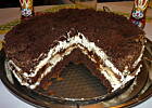 Bardzo dobre ciasto, naprawdę! Z regułu nie lubię ciast ale to mi bardzo zasmakowało, rodzince tym bardziej . Z pewnością będę wracać do tego przepisu! Biszkopt robiłam ze swojego sprawdzonego przepisu i nasączyłam go ciemną gorzką kawą. Śmietanę ( z konieczności, nie z wyboru - dałam jedynie 720 ml z dodatkiem 3 płaskich łyzeczek żelatyny co w zupełności wystarczyło ). Polecam amatorom niezbyt słodkich, niezbyt ciężkich i procentowych wypieków! PYCHA!