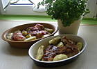 Till !! Ha rozwiązałaś problem z miesem gotownym z rosołku ... poniważ moje mezowate za miesem gotowanym nie przepada ... ale dzisiaj zjadł az uszka mu sie trzesły i bez .....protestu .. hihi ! Pozwoliłam sobie na modyfikacje .Skrzydłko z idyka zapiekłam z powidełkami a udka kurczęcia z żurawiną ...a ósemeczki szarej renety otoczyłam w majeranku .... cóz wiecej ,, totalna pychota Pozdrawiam serdecznie ..