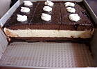Z biszkoptem (chociaż to raczej ciasto ucierane a nie biszkopt), szczególnie z kakaem bywa różnie - raz urośnie, raz nie. Dlatego ja - aby uniknąć problemów, od jakiegoś czasu, piekę dwa placki. Nawet jak są niskie i dosyć twarde (jak niezbyt urośnie miękkiego miąższu jest niewiele) to i tak nie przeszkadza - masa serkowa doskonale wszystko nawilża.