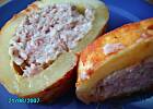 W piątek kabaczek był głównym daniem babskiej imprezy. Żadna z nas czterech nie jadła jeszcze kabaczka- został pożarty cały (a do malutkich nie należał, kurcze- w zasadzie był ogromny!). Bardzo nam smakował- tylko do mięsa nie dałam ryżu, za to dałam posiekaną cebulę i jedno jajko. Dłużej piekłam, ale był naprawdę solidny. Dzięki- zapoznałyśmy się z nowym daniem (z wielkim smakiem).