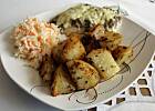 Polecam ten obiadek! Dzisiaj zrobiłam wszystko wg przepisu, jako surówkę wybrałam Colesława, którą szczególnie polecam, bo była pyszna. Ziemniaczki też bardzo dobre, upiekły się na złoto po 50 minutach i były mięciutkie w środku. Za to mięso musiałam piec nieco dłużej, bo około 40 minut, by się dobrze upiekło w środku (piersi i tak rozbiłam na kotlety, więc nie były zbytnio grube). Jednak piersi w smaku wyszły bardzo dobre. Jedyny minus tego obiadu to, to, że jest czasochłonny, ale warto się raz na kiedy poświęcić.