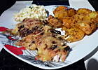 Po prostu PYCHA. W prawdzie ziemniaczki posypałam przyprawą do ziemniaków i zrobiłam normalne panierowane piersi z kurczaka (moje dziecię jest uczulone na pieczarki) ale wszystkim baaardzo smakowało a szczególnie mąż był zachwycony. Na drugi dzień sąsiadka pytała co ja tam gotowałam bo tak pachniało (miałam okno otwarte) i wzięła przepis na "Obiadek marzenie"