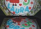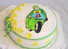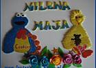 Oto moje "dzielo". Tak wygladaja moje ozdoby z masy cukrowej wykonane wg opisu, tylko pomalowane barwnikami w proszku rozpuszczonymi w wodce :) No i niestety nie mialam pisakow wiec kontury tez robilam w ten sam sposob... Niestety nie jest to idealne rozwiazanie, bo czarne kontury-mimo schniecia przez 24h mieszaly sie z kolorami, wiec trzeba bylo zostawiac margines, co biorac pod uwage wymiary detali latwe nie bylo... Poza tym barwniki rozpuszczone w wodce sa rzadkie-na kolejne urodziny dzieci chyba wyprobuje lukier, albo cos innego... Mam rok na przemyslenia, ale metoda zdecydowanie godna polecenia...! Wielkie dzieki autorce za pomysl!