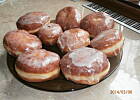 Zrobione i błyskawicznie zjedzone. Przepis mocno podobny do mojego (robię z receptury abratka z wędliniarzy), tam jest ciut mniej płynów i nieco więcej jajek. Mi chyba ciut bardziej odpowiadają abratkowe (choć to może prawo pierwszej miłości) mężowi te. Generalnie bardzo dobre i takie jak lubię (jakoś wolę te niż te żółtkowe). Ciasto fajne we współpracy, robią się błyskawicznie - nie ma się do czego przyczepić. z 1/2 porcji wyszło mi 13 pączków o masie ok 62g.