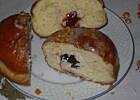 Pierwszy raz robiłam pączki na śmietanie.Prawdziwy full wypas,jak na Tłusty Czwartek przystało.Bardzo dobre,puszyste i z wiśniową konfiturą,którą uwielbiam.Smażyłam na smalcu.
