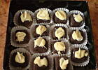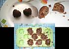 Ja zrobiłam w foremkach do lodu silikownowych z mlecznej czekolady z nadzieniem z rodzynek. To miałam pod ręką i na spróbowanie w sam raz. Oto co mi wyszło :