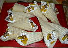 Ostatnio rozmawiałam z koleżanką na remat słodkości z wafli, i podsunęła mi ona pewien pomysł...:) W celu przygotowania wafli do zwinięcia je w rożki można by było użyć wilgotnej ściereczki (tak jak robimy rolady biszkoptowe) zamiast trzymania ich nad parą. Ja jeszcze nie próbowałam, ale jak ktoś będzie miał ochotę, to proszę o sprawozdanie...:))