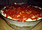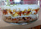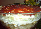 A tak wygląda moja sałatka warstwowa z powodu braku pekinki zakończyłammajonezem z jogurtem i czosnkiem .Sałateczka bardzo dobra polecam na codzień do obiadu i na święta.