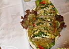 Dałam pod spód i troszkę na górę wielokolorowych sałat i cytrynkę, wygląda super efektownie, aż się zdziwiłam, bo bałam się, że co jak co ale Tobie nie dorównam :)