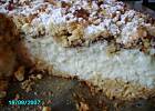 Ciasto bardzo dobre, rzeczywiście szybko się je robi i jest smaczne. Miałam spore obawy co do tej masy śmietanowej czy aby nie będzie za rzadka i czy się upiecze, no i jeszcze ta ilość wiórek, ale upiekło się bardzo dobrze, wiórki im są drobniejsze tym lepiej, bo są prawie niewyczuwalne.Na wierzch nie starłam ciasta, bo nie zdążyło mi się dobrze schłodzić, więc rozwałkowałam pocięłam na paski i ułożyłam kratkę jak na serniku.Jeszcze jedna zaleta - ciasto nie jest za słodkie . Pycha.
