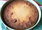 I znowu, w tortownicy, na spodzie piernikowo-kakaowym. Dodałam orzechy włoskie, rodzynki i żurawiny trochę. Pyszny i równy, dziękuję.:))