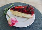 Upiekłam z serka waniliowego President, dodatkowo spód tortownicy wyłożyłam herbatnikami, a na wierzch dałam mrożone owoce /maliny, borówka am. i truskawki/ i galaretkę. Dzięki.