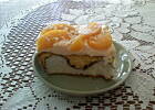 Upiekłam i w mojej wersji na wierzchu jest galaretka z soku brzoskwini ze śmietaną. Ciasto bardzo dobre. Polecam