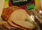Jeżeli ktoś lubi poprzerastane tłuszczem mięso, pieczeń będzie ok. Bo tluszcz jest bardziej widoczny, rzuca się w oczy bardziej niż w tradycyjnej karkowce. Może to efekt peklowania mięsa, jest pięknie czerwone. W smaku nie czuć tłuszczu oddzielnie, nie jest też tłustym glutem, jak np w przypadku gotowanego boczku. Mnie nie przeszkadza, mięso jest bardziej soczyste, ale Ślubny odmawia jedzenia i już.