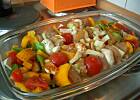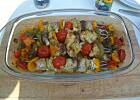 Ja również robie takie szaszłyki i w razie niepogody piekę je w piekarniku... tak przy 160 stopni około 30-40 minut a potem próbuję czy mięsko juz jest upieczone ale nie za suche. Dodatkowo dodaję pomidorki koktajlowe i nie żałuje przypraw. Pyyyychaśne są. Tutaj przed piekarnikiem: