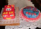 Witam, podpatrując Zygzaka wykonanego przez Aniula27 i Dorotaxx, stworzyłam własnego dla mojego synka Mikołaja na 5 urodzinki. Przedszkolni koledzy i rodzinka byłi zachwyceni!!! Krem zrobiłam z przepisu Dorotaxx, ale przyznam,że wolę kremy na kremówce ( bałam się, że bort będzie za ciężki i kremówka "ucieknie"...). Jestem beztalentem manualnym i szczerze pisząc, zdziwiłam się, że tak mi się udało! Wymagało to dużo pracy (samo osdabianie 3 godz.),ale byłam tak podedscytowana, że zniosłam to dzielnie... Pozdrawiem przede wszystkim wszystkich początkujących i dziękuję bardzo za piękne pomysły!!!