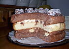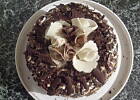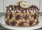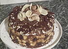 Tort gtowy. Krem pyszny. O koncowym efekcie smakowym nic jeszcze nie moge powiedziec bo nie moge go rozkroic. Biszkopt (z 6 jajek) zrobilam z kawalkami czekolady, wyrosl mi pieknie, wiec bez problemu podzielilam go na 3 czesci. Mam nadzieje, ze bedzie mi dane skosztowac ten tort. Napewno jest pyszny, polaczenie tego smaczniutkiego kremu z truflami i biszkoptem..... mniam! A oto efekt koncowy, moj maz mi dzielnie pomagal.
