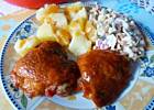 Jak zawsze pyszne,tym razem lekko mi się przypaliłypodałam z pieczonymi ziemniaczkami,surówką z pekińskiej i tzatzykami