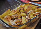 Robię podobnie, tylko ziemniaki kroję w plastry, wtedy jest się pewnym,że nie będą surowe, a kurczaka doprawionego(na noc)obs