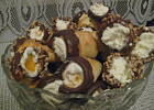 Jeżeli dysponuje się dużą iloscią foremek (ja mam chyba ze 30:-)) to robi się je bardzo szybko. Do wypełnienia użyłam kremu cytrynowego (zostało mi z metrowca cytrynowego). Pyszne. Następnym razem sprobuję zrobić z inną masą, np kawową (widziałam, że Alidab ma taką w swoich zbiorach). Polecam