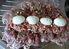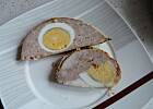 Potrzymałam mięsko 1 dzień w zalewie.Potem skręciłam+jaja i wyszło coś takiego czesć mięska mielonego ułożyłam na płacie z kurczaka+jaja(bo to jajeczne święta) i wyszło coś takiego