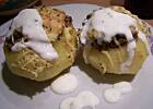 Postanowiłam tez zrobic na obiadek cos innego, a że czasu miałam mało, to najpierw duze ziemniaki podgotowałam w mundurkach (aldente :), do farszu z pieczarek dołożyłam podsmażone mięso mielone z indyka i dwie podprażone cebulki, pół łyżeczki sosu sojowo-grzybowego, łyżke świeżej natki pietruszki, Wydrążyłam troche ziemniaki, napakowałam masy, posypałam żółtym serem i chop do piekarnika na pół godzinki. Podałam z sosem jogurtowo-czosnkowym i ledwie sie ruszalismy po tym pysznym jedzonku :)))))) Dzieki za przepis i inspirację :)))))))