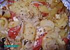 wariację zapiekanki wykonałam na dzisiejsze wieczorne spotkanie ze znajomymi. Generalnie super!!! na stałe będzie gościć w jadłospisie. moja wersja byla urozmaicona - dodałam jeszcze trzy kolory papryki (biała, zielona, czerwona) oraz oliwki (zamiast oliwy z oliwek - zapachu jakoś nie lubię - tu dałam normalny olej - ). Godzina czasu to stanowczo za mało dla ziemniaków (były twarde), zresztą po upływie godziny całosć nadal pływała w sosie - feta się upłynniła a płyn z warzyw nie odparował - następnym razem dam ziemniaki podgotowane na parze, co znacznie skróci czas piecznia. moja zapiekanka piekła się prawie dwie godziny, przy czym można by skrócić czas o 10 minut (bo już zaczęła się przypiekać).