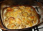 ) na zapiekane ziemniaki, który ostatnio stosuję, otóz przed pokrojeniem ziemniaków na talarki należy podgotować je około 10 minut w nieosolonej wodzie (skraca to czas pieczenia, ale... wychodzą mniej chrupkie)