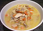 Bardzo smaczna i treściwa zupka! Sama często robiłam zupę pieczarkową ale warzywa i kurę dawałam psu, od dziś musi się chłopak obejść smakiem Zupę zabieliłam delikatnie śmietaną. Pyszna!