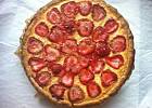 Jeszcze gorąca Pełnoziarnista tarta z nadzieniem serowo-kokosowym i truskawkami :)