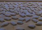 Formuję naoliwionymi łapkami w miarę kształtne kotlety i już położone na desce rozpłaszczam odwrotną stroną noża tworząc krateczkę na obydwu stronach kotleta.....