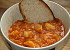 Dzisiaj gulasz drobiowy z ziemniakami i sałatką z zielonych pomidorow.